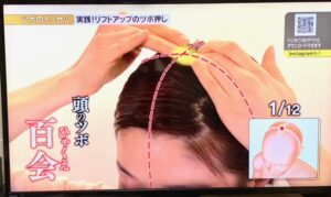 百会:頭のてっぺん、耳の上端を結んだ線の交差するところ